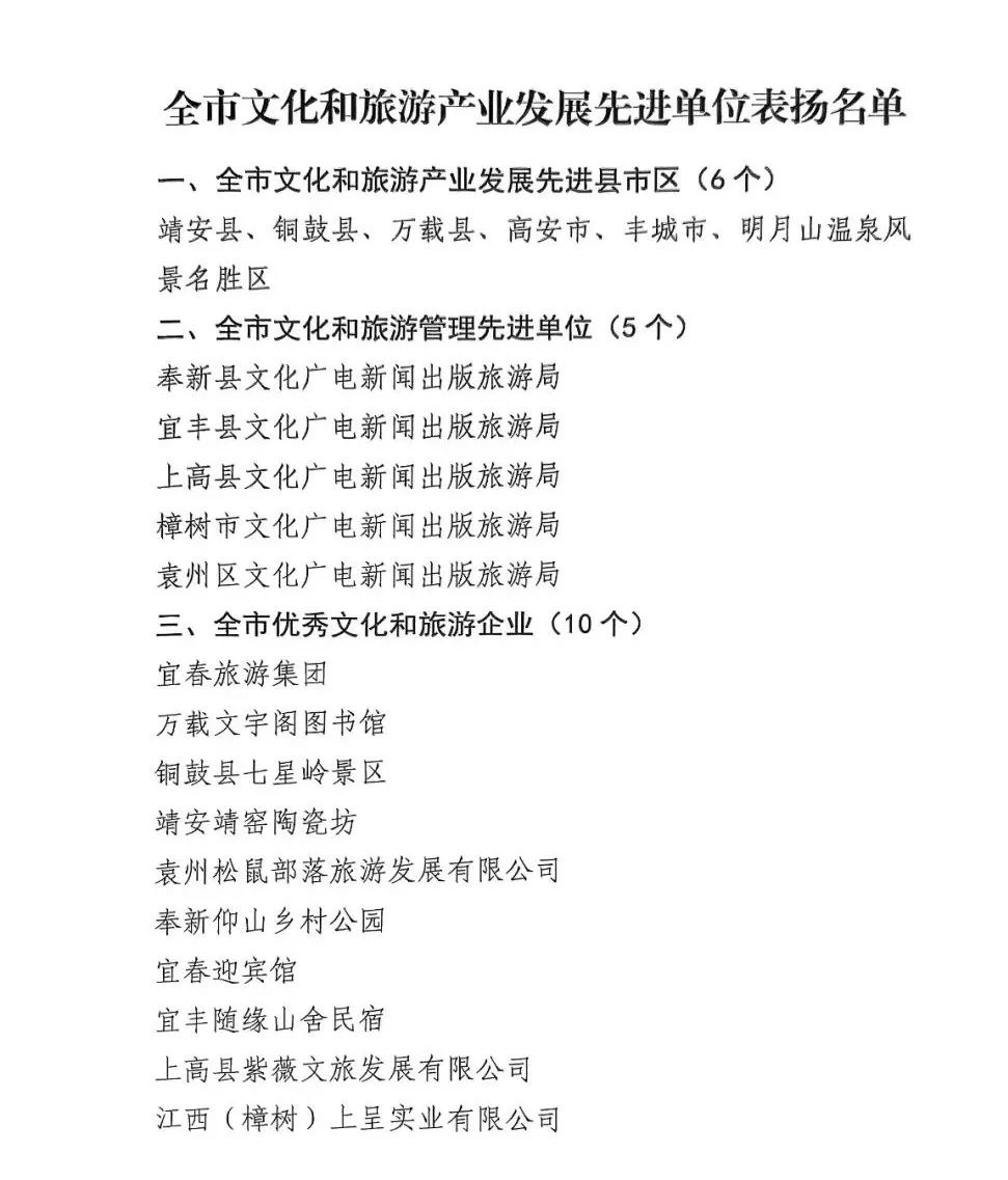 喜報!喜報!宜春旅游集團榮獲“全市優秀文化和旅游企業”榮譽稱號