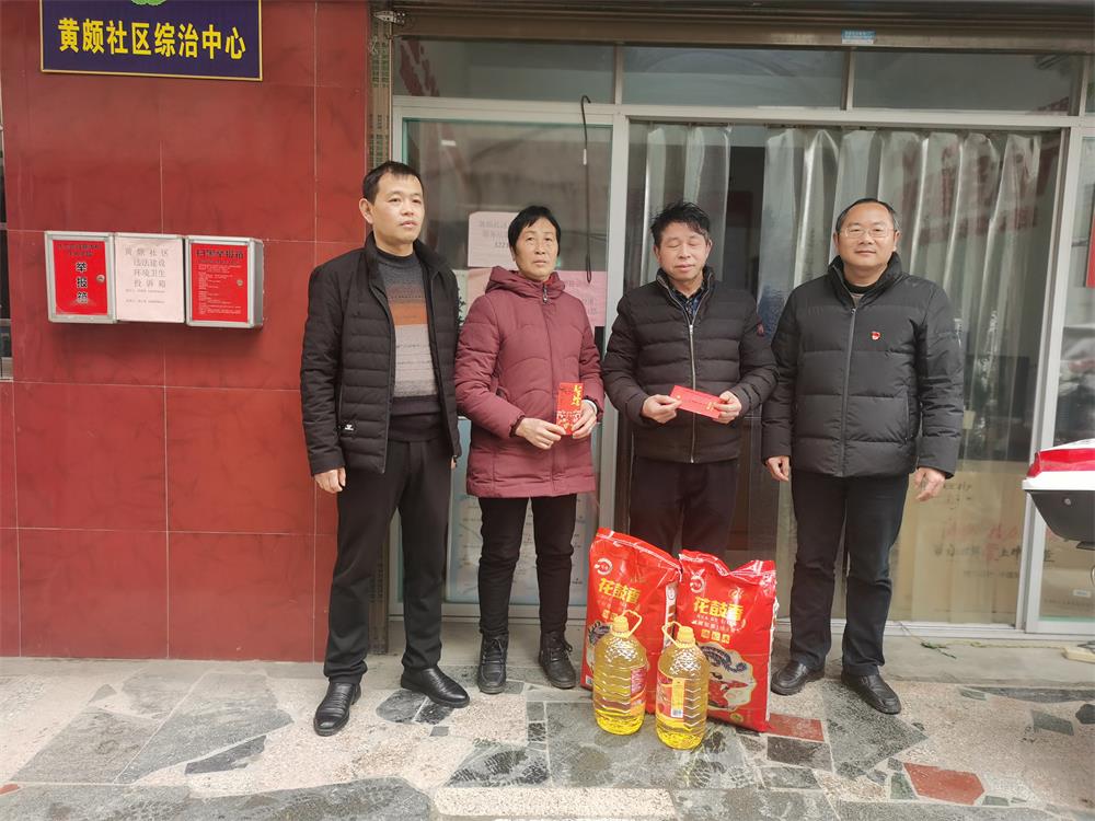 新春佳節將至,2月1日下午,公司黨委委員、副總經理易志紅同志帶隊,對社區困難黨員、居民進行走訪慰問,黃頗社區曾擁軍書記陪同走訪。