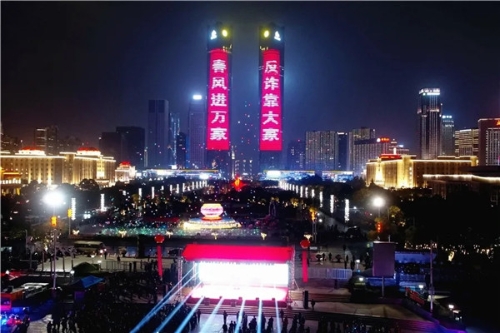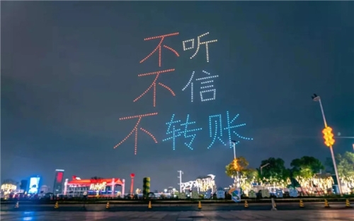 儀式結束后,一場以反電詐宣傳為主題的一江兩岸和無人機燈光秀在秋水廣場上演,吸引了廣大市民朋友駐足觀看、網絡轉發(fā),吹響了“春風”行動的號角。