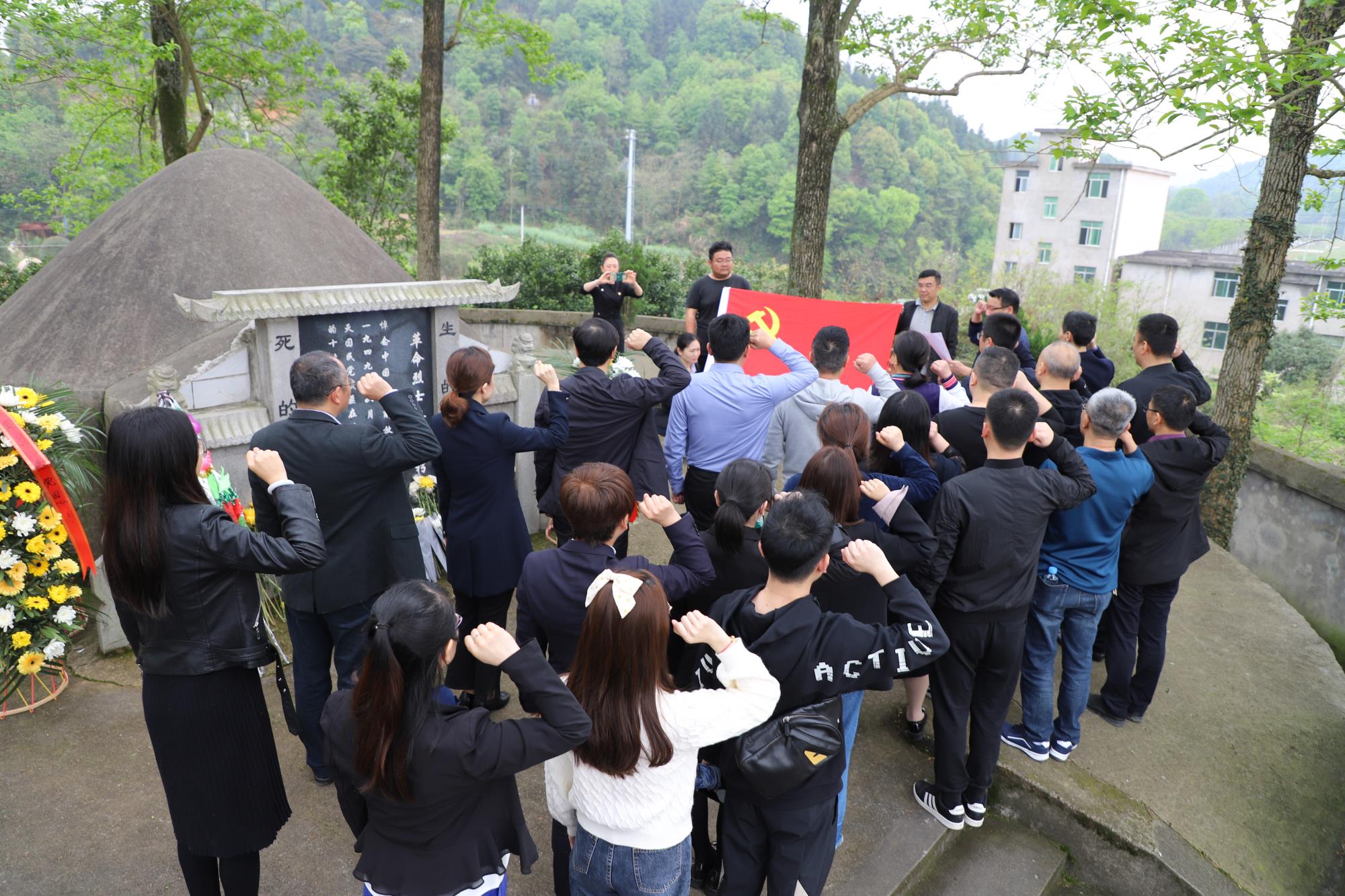 “我志愿加入中國共產黨,擁護黨的綱領,……”在莊嚴肅穆的革命烈士公墓前,全體黨員面對黨旗舉起右手,集體重溫入黨誓詞,用鏗鏘有力的誓言,表達為黨的事業奮斗終身的決心。大家表示,要傳承好烈士的革命精神,牢記初心使命,在推動宜春旅游集團公司高質量發展各項工作中貢獻力量,以優異的工作業績向建黨百年獻禮。