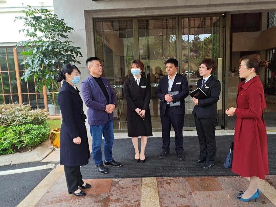 在東湖酒店站,宣講小分隊與酒店管理人員就扎實做好黨史學習教育氛圍營造工作進行了探討交流。