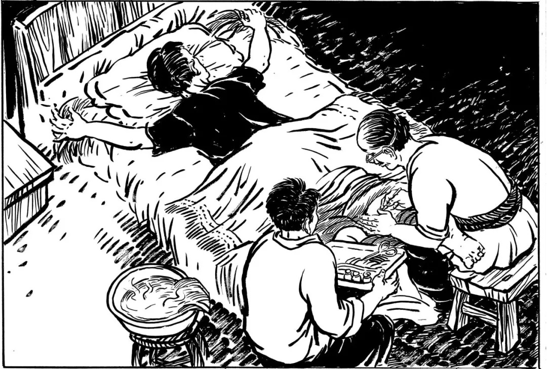 這天,謝團長見老中醫這段時間總是看見自己的傷口就心事重重的樣子,心里也明白了八九分,便問道:“大叔,是不是我腿中還有彈片?”老中醫點點頭。謝團長又問:“是不是取不出來?”老中醫說:“取得出來,取得出來。”謝團長笑了笑:“那你現在就給我取吧。”老中醫猶豫了好一陣子,搖著頭說:“你現在身子還虛,動手術怕有意外,另外……”謝團長說:“大叔,如果你沒有什么難處,只管動手術吧,我聽你的。”老中醫嘆了口氣:“謝團長,實話對你說,這手術本來早就該動,但沒有麻藥怕你吃不消,我和生保想了很多辦法,都沒有把麻藥弄到……”謝團長一聽,才知道老中醫近來心神不寧,四處奔忙,原來是為了找麻藥,想減輕他在手術時的痛苦,不禁感動得熱淚盈眶。他緊緊攥住老中醫的手說:“大叔,你們這樣對待我,我是終身難忘呀!沒有麻藥不要緊,古人尚能刮骨療毒,何況我還是一個紅軍戰士、共產黨員呢!大叔,你現在就開始動手術吧!”老中醫望著謝團長剛毅的面容,也激動得流出了淚水。