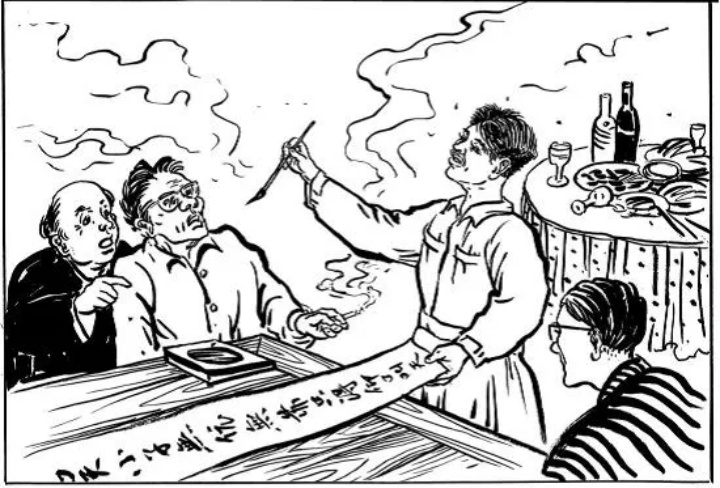 國(guó)民黨探知戴參謀是個(gè)地主家庭出身的知識(shí)分子,便挖空心思,軟硬兼施,妄想逼迫他叛變革命。于是布置圈套,設(shè)宴款待,由一個(gè)姓吳的軍官和幾個(gè)特殊賓客作陪。酒席上,幾個(gè)跳梁小丑賣(mài)弄風(fēng)雅,談古論今,題詩(shī)作對(duì),不斷勸說(shuō)戴參謀投敵叛變,戴參謀只是端然而坐,對(duì)其不理不睬。酒過(guò)三巡,戴參謀仍然不為所動(dòng),吳姓軍官賊心不死,又想出一個(gè)詭計(jì),吩咐勤務(wù)兵拿來(lái)筆墨和一張大紅紙。他應(yīng)用拆字法肢解“戴”字,在紅紙的一邊寫(xiě)了一句上聯(lián):“戴先生有田有土,何必操戈入共?”寫(xiě)畢,嬉皮笑臉地向戴參謀求對(duì)。戴參謀識(shí)破敵人的詭計(jì),即以其人之道還治其人之身,在紅紙的另一邊迅速寫(xiě)了一句下聯(lián):“吳小子無(wú)依無(wú)靠,只得仰口叫天。”聯(lián)語(yǔ)針?shù)h相對(duì),諷刺辛辣,弄得敵人瞠目結(jié)舌,自取其辱,只得悻悻散了席,從此打消了念頭。