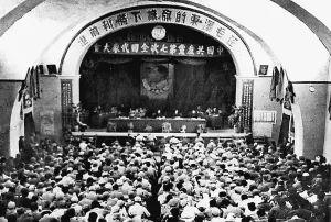 中國共產黨第七次全國代表大會于1945年4月23日至6月11日在延安楊家嶺中央大禮堂舉行。出席大會的共755人,其中正式代表547人,候補代表208人,代表著全黨121萬名黨員。任弼時主持開幕式,毛澤東致開幕詞和閉幕詞,并作了《論聯合政府》的書面政治報告、關于形勢和思想政治問題的報告、關于討論政治報告的結論和關于選舉的問題的講話;朱德作《論解放區戰場》的軍事報告和關于討論軍事問題的結論;劉少奇作《關于修改黨章的報告》和關于討論組織問題的結論;周恩來在會上作《論統一戰線》的講話。毛澤東在《論聯合政府》的報告中,科學分析了國際國內形勢,抓住了當時時局的關鍵,著重提出了中國人民強烈希望建立民主聯合政府,打敗日本侵略者,建設新中國的基本要求。他號召全黨要發揚黨的理論和實踐相結合的作風,和人民群眾緊密地聯系在一起的作風以及批評與自我批評的作風。圍繞上述報告,各代表小組、代表團進行了充分討論。任弼時、陳云、彭德懷、張聞天、陳毅、葉劍英、楊尚昆、劉伯承、彭真、聶榮臻、陸定一、烏蘭夫等20多人作了大會發言。這些報告和發言從各個方面論述黨的政治路線、軍事路線、組織路線的基本精神,總結黨的歷史經驗,并對各條戰線的任務和政策提出了具體意見。大會一致通過了毛澤東的政治報告、朱德《論解放區戰場》的軍事報告和劉少奇修改黨章的報告及新黨章。