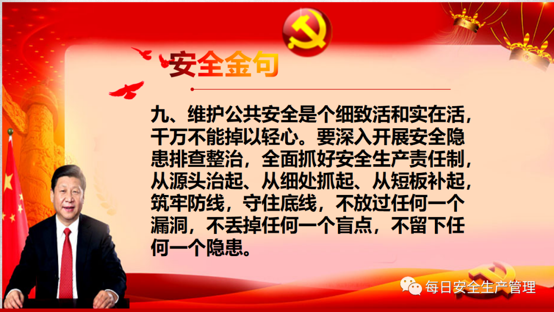 安全保障是一個系統工程,其實比我們想象得要艱巨得多,這不是幾個人的事,而是每個人的事,只有每個環節每個崗位都守土有責,守土盡責,多管齊下,才能讓安全不掉鏈子,始終在線。
