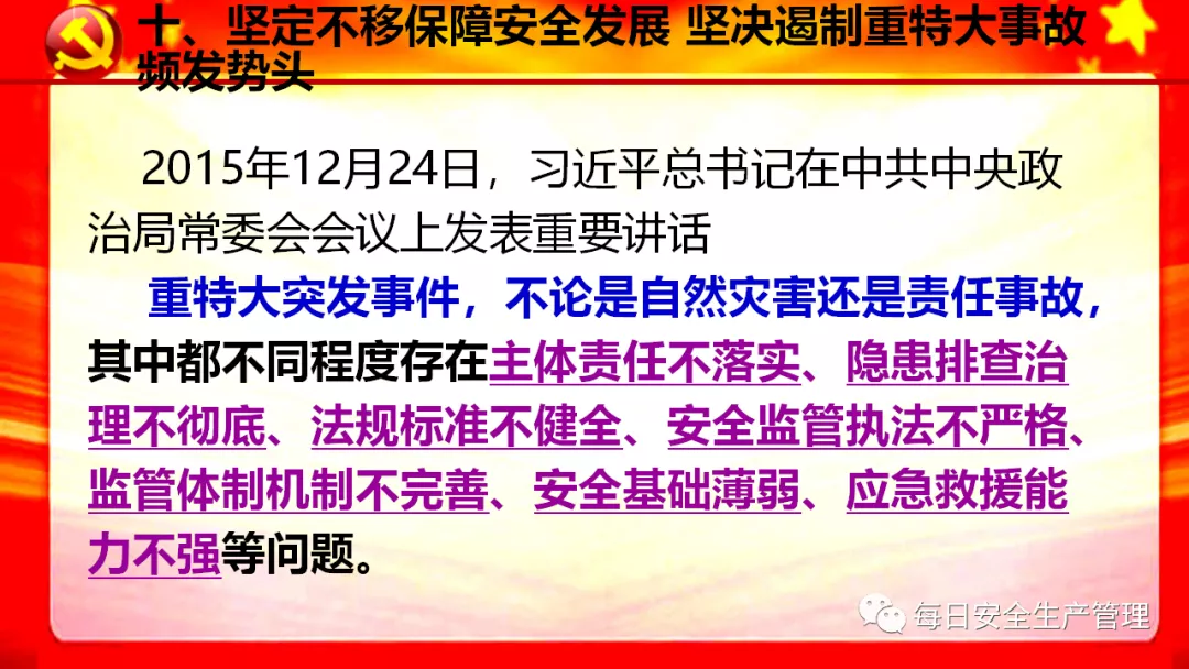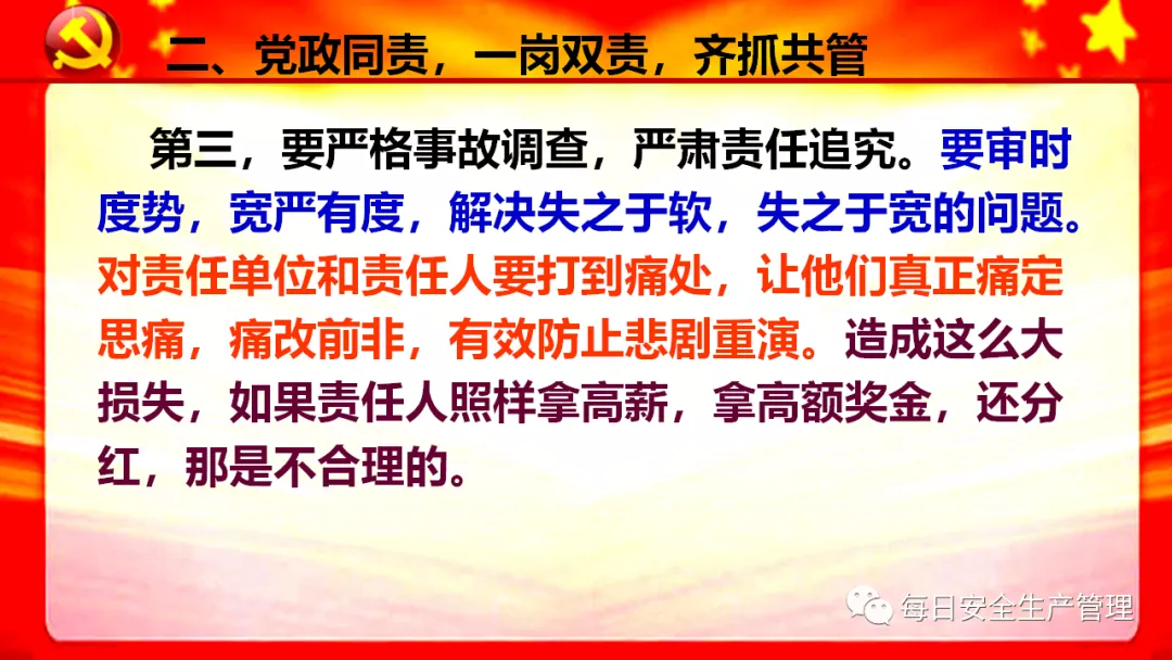 (事故不講政治,人要講政治,馬上就是黨的百年華誕,不能讓生產安全事故影響社會穩定,要防范重大突發事件的發生,要切實保障人民群眾生命安全和財產安全)