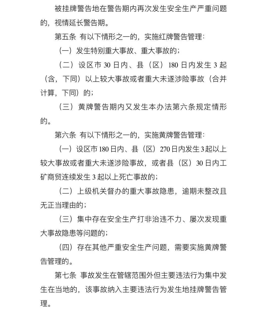二是與安全生產約談制定相銜接。約談的對象是黨政領導干部,掛牌警告的對象是地區,二者相互協同,織密安全生產責任網,增強措施疊加實施的震懾力。