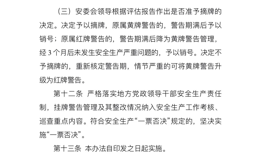 三是明確掛牌警告實施程序和掛牌警告督辦單內容,并由各級安委會辦公室承擔具體工作;