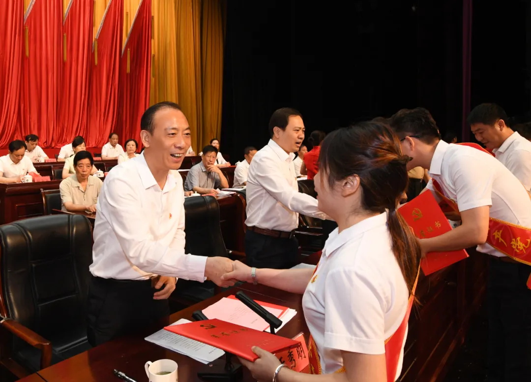 張鑒武、陳榮等市四套班子領導以及市中級人民法院院長、市人民檢察院代檢察長、宜春學院黨政主要領導出席會議。會議宣讀了《中共宜春市委關于表彰全市優秀共產黨員、優秀黨務工作者和先進基層黨組織的決定》《市直機關工委“兩優一先”表彰決定》,并為全市“兩優一先”代表頒獎。