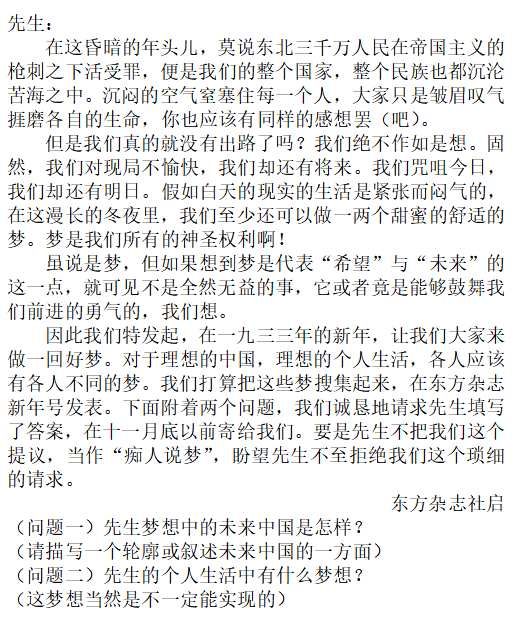 1933年的元旦,《東方雜志》推出了一期“新年特號(hào)”,名為“新年的夢想”。