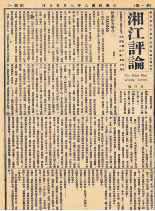 青年毛澤東在《<湘江評(píng)論>創(chuàng)刊宣言》中寫道:“時(shí)機(jī)到了!世界的大潮卷得更急了!洞庭湖的閘門動(dòng)了,且開了!浩浩蕩蕩的新思潮業(yè)已奔騰澎湃于湘江兩岸了!順?biāo)纳嫠乃馈!?/span>