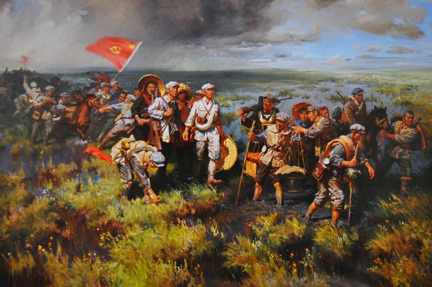 八十多年前的一個(gè)夜晚,夜幕籠罩著無邊無際的草地,簇簇篝火映著一群又一群饑餓難耐的紅軍指戰(zhàn)員。萬籟俱寂的草地夜空,突然飛來用法語演唱的《馬賽曲》的歌聲。循著歌聲,只見一位颯爽的女紅軍正面對(duì)夜空縱情歌唱《馬賽曲》。徐特立、成仿吾等受到《馬賽曲》的感染,請(qǐng)不自己地站起,應(yīng)和起來。毛澤東循著歌聲走到近前,他駐步靜靜地傾聽。《馬賽曲》的歌聲終止了,但草地的夜空依然余音不絕。毛澤東說“好!唱得好!”帶頭鼓起了掌,“同志們!我從你們的歌聲中不僅感到了力量,忘記了饑餓,而且還看到了中國革命最美好的希望!”
