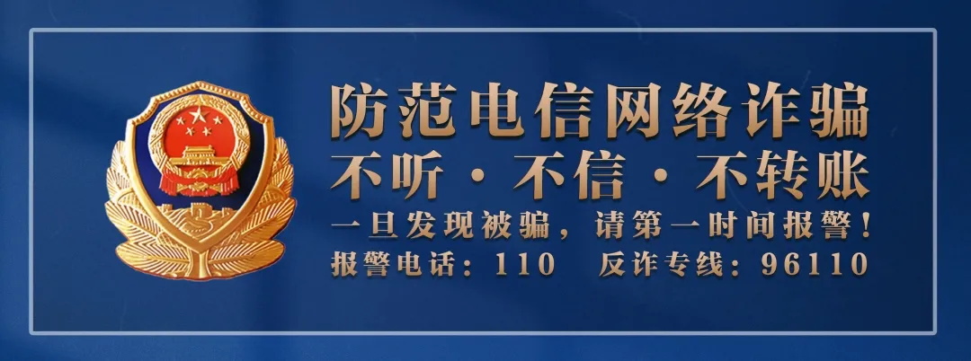 6.如發(fā)現(xiàn)被騙,請立即撥打110或者到就近公安機(jī)關(guān)報(bào)案。
