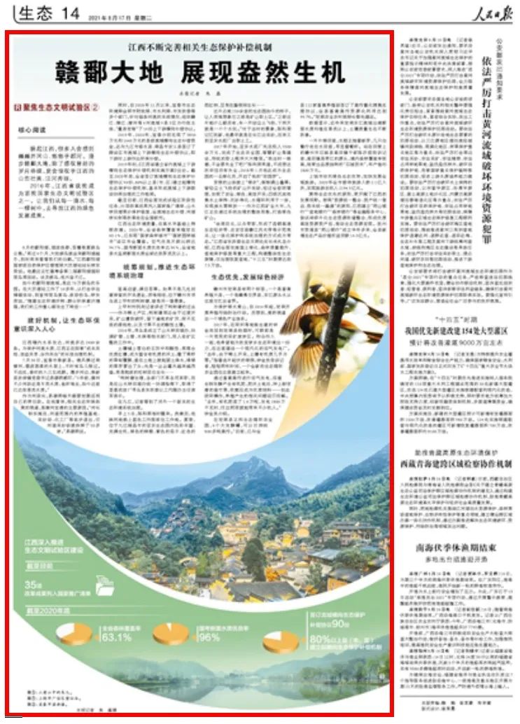 人民日報:江西不斷完善相關生態保護補償機制 贛鄱大地展現盎然生機