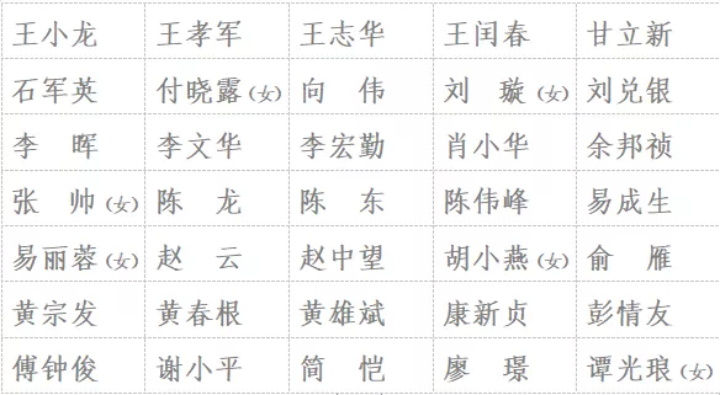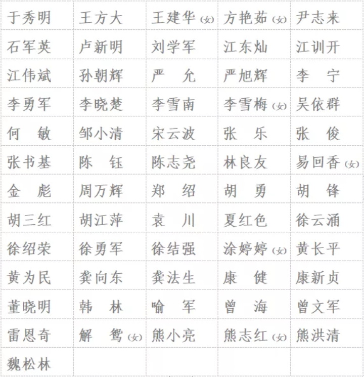 (共13名,按得票多少排序,得票相同的按姓氏筆畫為序)