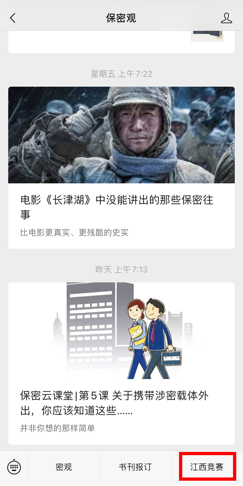 手機關注“保密觀”微信公眾號,點擊“江西競賽”欄目。