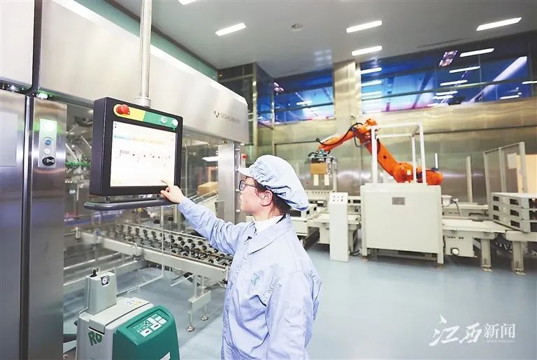 1月25日,記者在江中藥谷參靈草生產車間看到,中央控制室下達生產指令,107個機器手臂此起彼落,無人駕駛AGV小車有條不紊地運輸物料,原材料、廢氣、廢水在密閉管道流動。“這個車間只有10余人管理,同等產量的傳統車間需要近200人。”鐘志堅說,“六年來,我們狠抓藥品質量,生產線軟件幾度優化,生產效率和質量不斷提升。”
