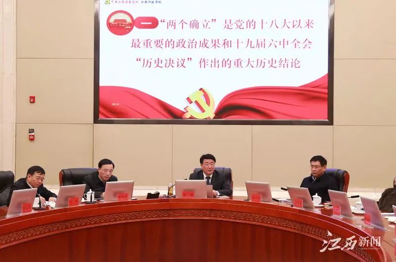 易煉紅就深入學習貫徹黨的十九屆六中全會精神,更加堅定自覺地捍衛“兩個確立”、做到“兩個維護”提出要求。他強調,