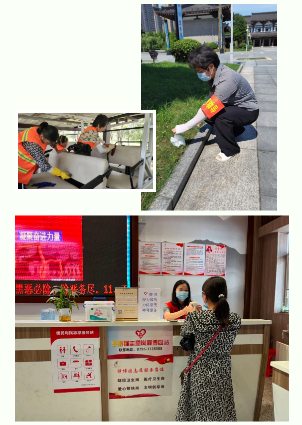 為打造文明旅游景區,助力文明城市創建, 宜春旅游集團轄屬宜春禪都文化博覽園全體員工積極參與一線志愿服務,設立學雷鋒服務點,為游客提供旅游咨詢、文明勸導、嬰兒車寄存、輪椅租借等服務,熱心為游客發放“園區導覽圖”“文明禮讓”“創建文明城市”等宣傳資料,通過實際行動帶動更多人參與到文明城市創建工作中來,共同打造良好的生活環境、共同維護文明城市形象。