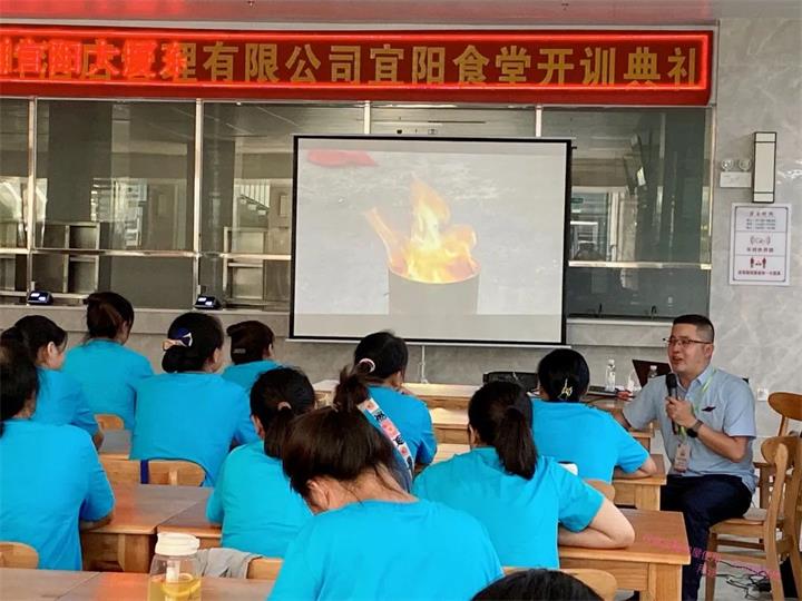 管理層代表楊霞、東食堂代表湯美瑛、西食堂代表陳皎、員工代表歐陽莎分別做表態性發言,項目經理吳子育作了熱情洋溢的歡迎詞。宜陽食堂總顧問曾根保就做好此次培訓作了總動員,他圍繞“為什么學,學什么,怎么學”進行了深入淺出的闡述,對服務(service)的理解予以詮釋,全面介紹了培訓指導思想、工作目標、主要任務,同時對疫情防控和強化管理等方面提出了要求。