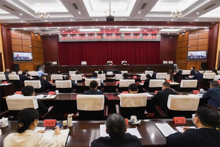 市委副書記、市長嚴允部署下一步經濟工作。李寧、袁川等市四套班子領導出席會議。會議通報了全市前三季度經濟運行情況,以視頻形式開到各縣市區。