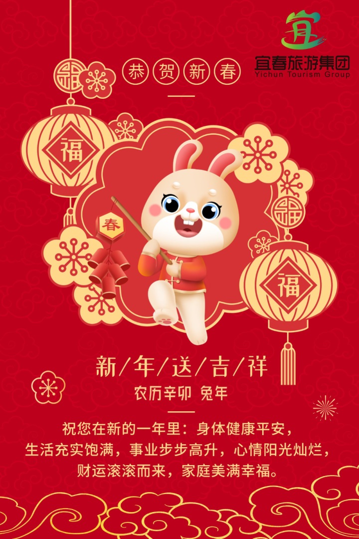 虎年喜結豐收果,兔歲欣開幸福花。值此辭舊迎新的時刻,向長期以來關心支持宜春旅游集團發展的各級領導和社會各界表示衷心的感謝,向全體干部職工及家屬致以新春的祝福。