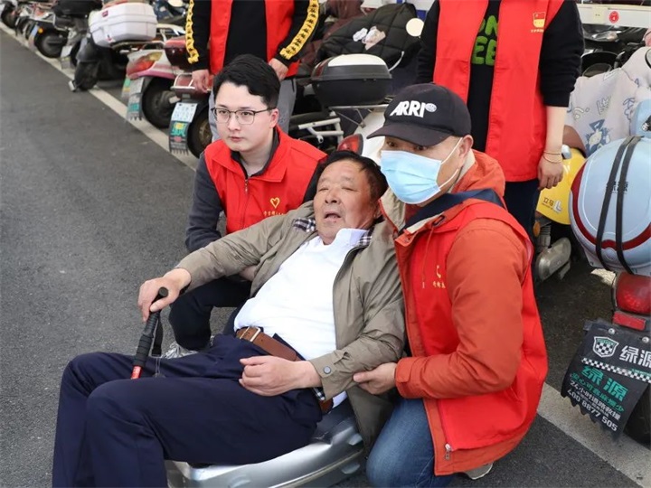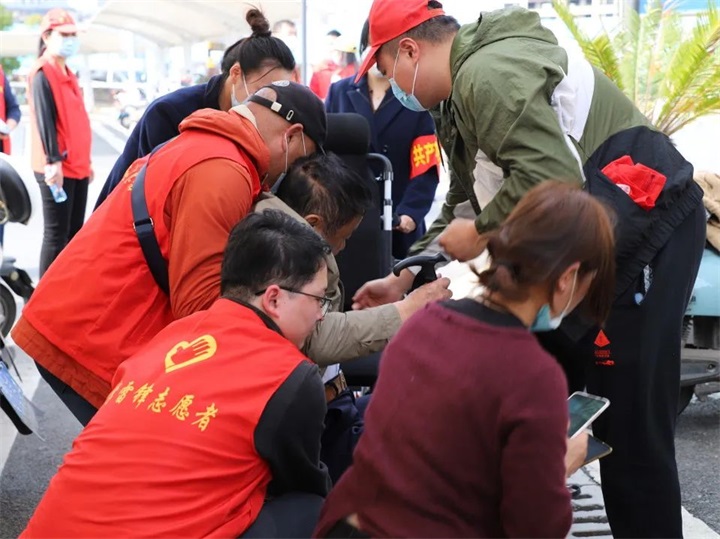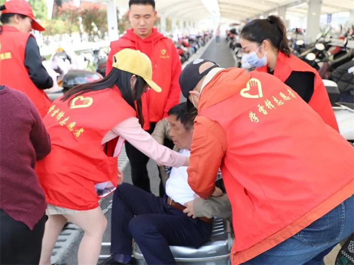 在前往高鐵站開展學雷鋒志愿活動途中,突遇一名外地旅客突發身體不適,全身無力癱倒在地,志愿者們見狀趕忙一起將老人攙扶至陰涼處,為老人服下速效救心丸,并關切地詢問老人是否有過往病史,身體具體有哪些不適。并迅速聯系高鐵站服務人員推來輪椅,緩解老人的不適。與此同時,志愿者們一方面協助通知遠在上海的老人家屬,一方面提醒隨行人員撥打120急救電話,將老人移交給前來的醫護人員接收后才放心離去。