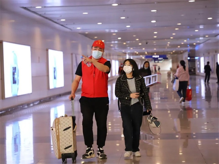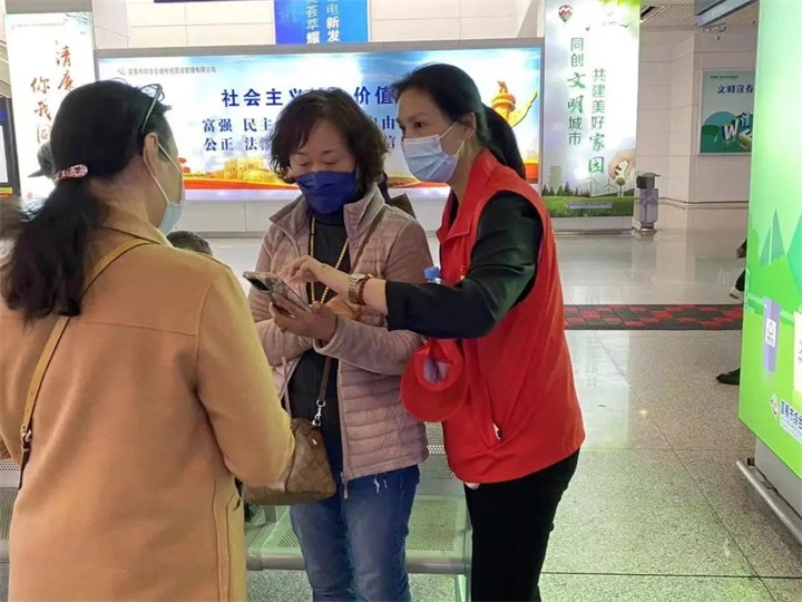 出站口處,大量旅客急需換乘、轉乘等服務。志愿者們在出站口耐心指引換乘路線,幫助搬運行李,為旅客節約中轉時間提供了方便。值守樞紐接待臺的志愿者為旅客查詢交通線路,獲得了旅客的交口稱贊,并向有特殊需求的旅客提供輪椅接送等貼心服務,讓人們出行安心、放心、舒心。