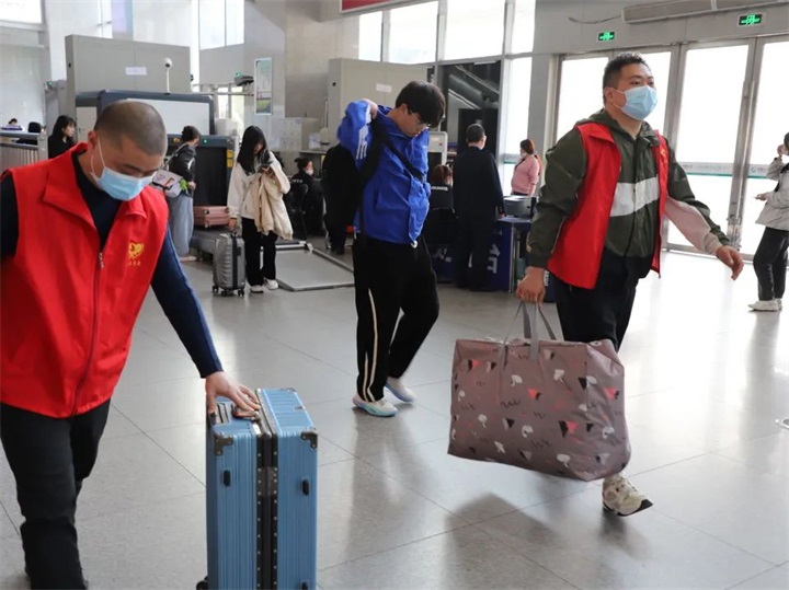 正值旅客往返高峰期,趕時間成為旅客出行的一大難題。在候車廳與旅客進站區,志愿者們不辭辛苦為旅客提拉行李,指引進站路線,提高了旅客乘車效率,也保障了旅客出行安全。