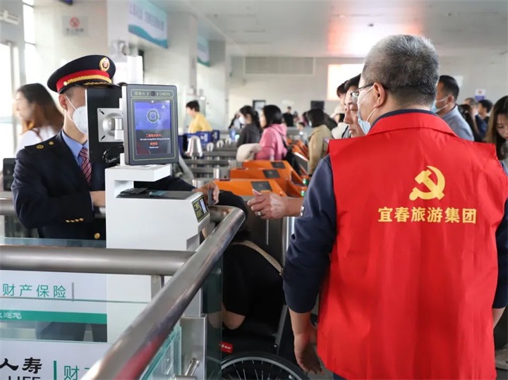 在我市重要交通樞紐宜春高鐵站,集團本部志愿者集中開展“賡續傳承雷鋒精神,展現宜旅員工風采”主題志愿服務活動。黨委委員、副總經理易志紅參與活動并講話。