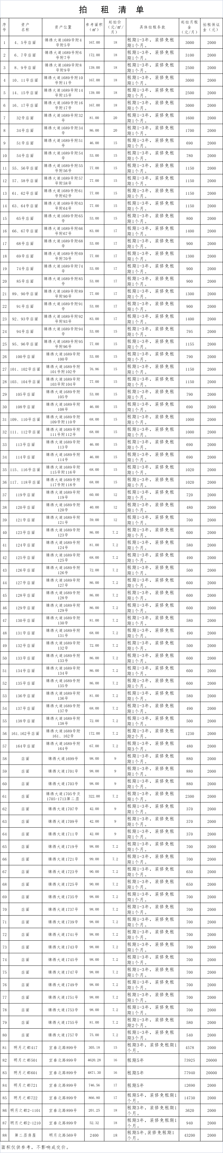 以上標的詳情見拍租清單。
