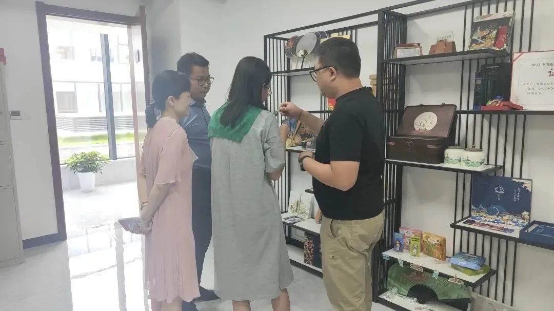 在參觀文創展示區系列產品時,五葉文旅相關人員對文創產品進行了詳盡的介紹,陳見華同志充分肯定了五葉文旅品牌理念和品牌發展方向,基于當前文創市場趨勢與五葉文旅展開了進一步的討論,并對我司文創產品業務拓展給出了指導性建議。